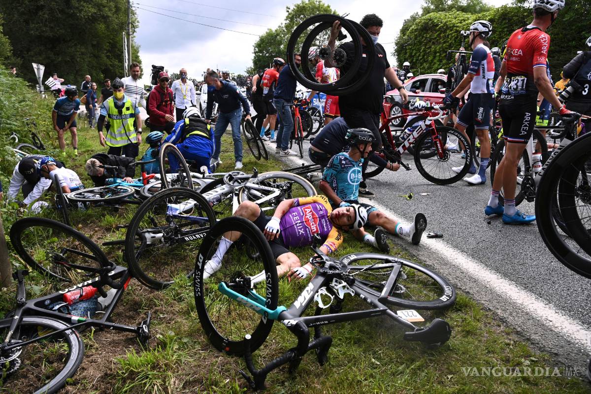 Vestida con un impermeable amarillo, la aficionada mostraba una pancarta en alemán en un cartón al paso del pelotón y fue arrollada por el germano Toni Martin, que se fue a tierra y arrastró a varios otros ciclistas en una enorme montonera a 45 kilómetros de la meta de Landerneau.