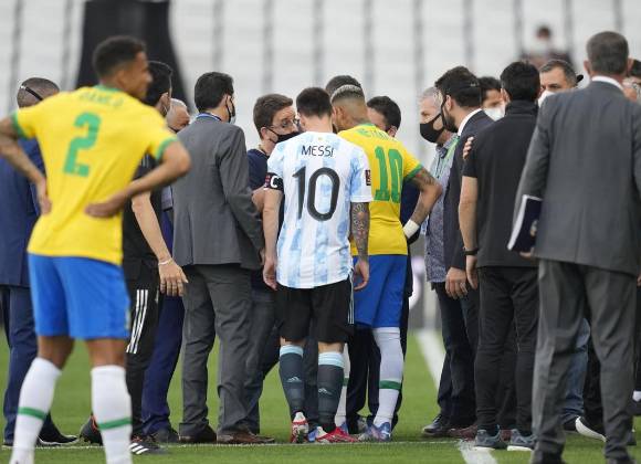 El clásico Brasil-Argentina fue suspendido en septiembre a poco de iniciado el encuentro disputado en Sao Paulo. Funcionarios de sanidad brasileños ingresaron al campo de juego para retirar a tres futbolistas argentinos que supuestamente habían violado restricciones sanitarias por el coronavirus.