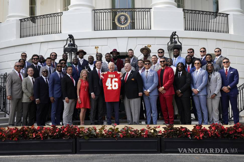 “Los Chiefs no solo tienen el título otra vez, sino que están construyendo una dinastía. Mantienen su fe y superan sus lesiones”, afirmó Biden durante un evento en el jardín sur de la Casa Blanca ante decenas de personas, incluidos varios políticos de Misuri, estado de los Chiefs.