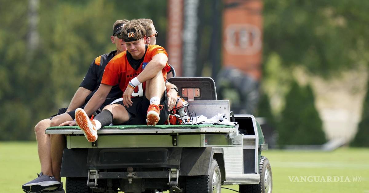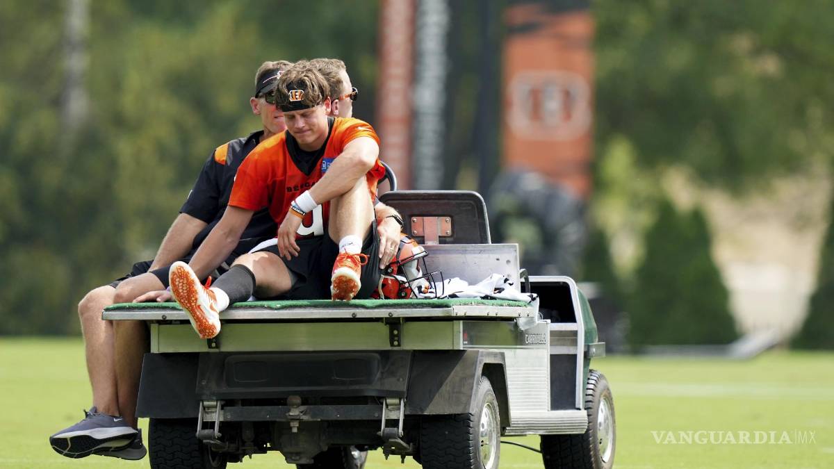 El quarterback de los Bengals de Cincinnati, Joe Burrow, fue retirado del campo vía carrito de las asistencias médicas durante la práctica del jueves con una lesión a la pantorrilla derecha, informó el head coach Zac Taylor a reporteros.