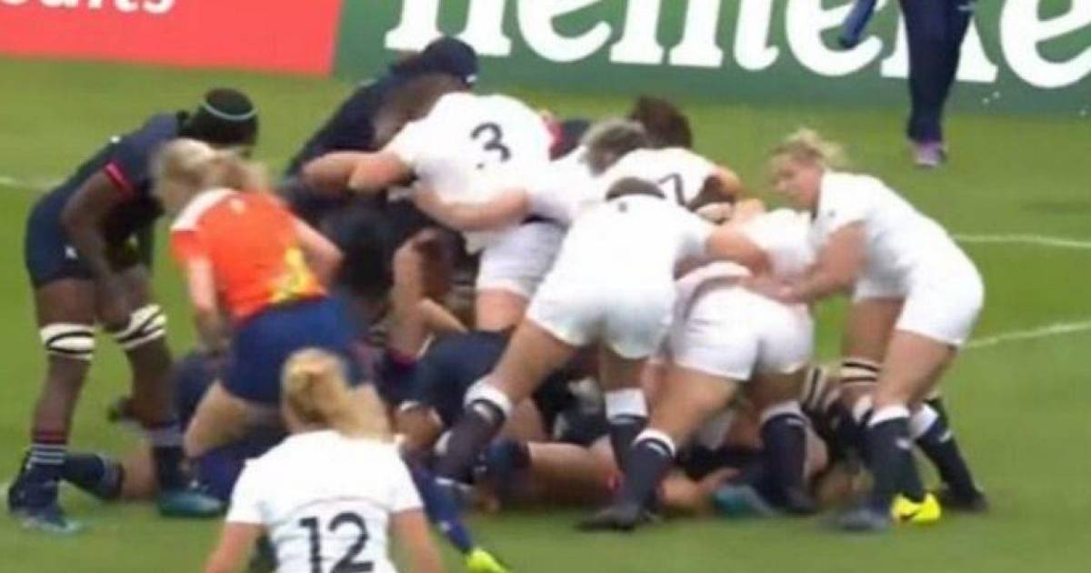 Durante el juego entre Inglaterra y Estados Unidos, una jugadora del equipo de las "Red Roses", quedó semidesnuda tras unos forcejeos y ante las cámaras apareció en tenga y con el sujetador a la vista.