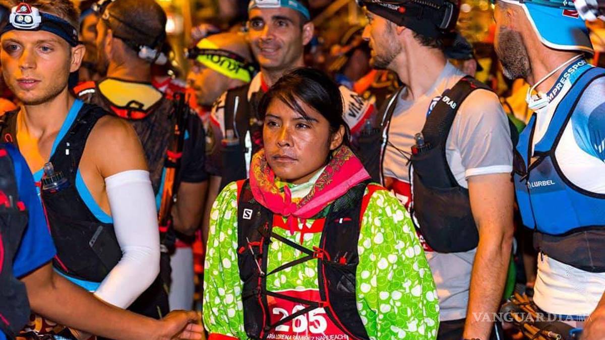 Con su tradicional vestimenta y sólo unos huaraches hechos con suela de llanta y correas de cuero, la corredora de 23 años se convirtió en 2017 en la primera mujer rarámuri en correr en Europa, sin embargo una dolencia en la rodilla le impidió terminar el reto.