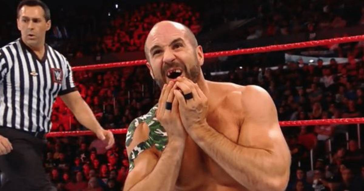Cesaro loses teeth.#BackAndToTheLeft pic.twitter.com/LZF6VDRmg1
