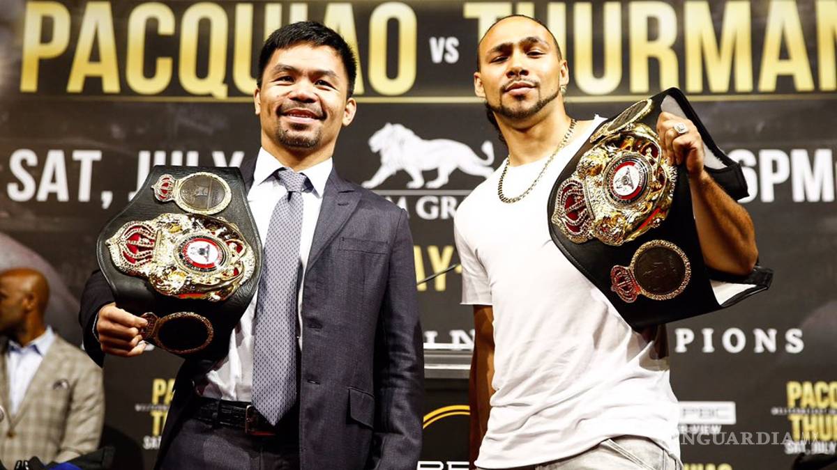 Pacquiao, campeón regular welter de la Asociación Mundial de Boxeo, busca arrebatarle al invicto estadounidense el campeonato de ese organismo para tener un solo titular en la división. Afirma estar listo para cerrarle la boca a Thurman, quien ha dicho que lo destruirá en el combate a celebrarse en Las Vegas.