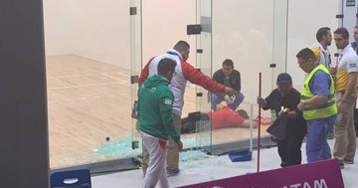 Tremendo golpazo del mexicano Alvaro Beltrán, rompió el vidrio del cubo donde son las finales de raquetbol, donde competirán las guatemaltecas Ana Gabriela y María Renée pic.twitter.com/ilLOLp7XOc