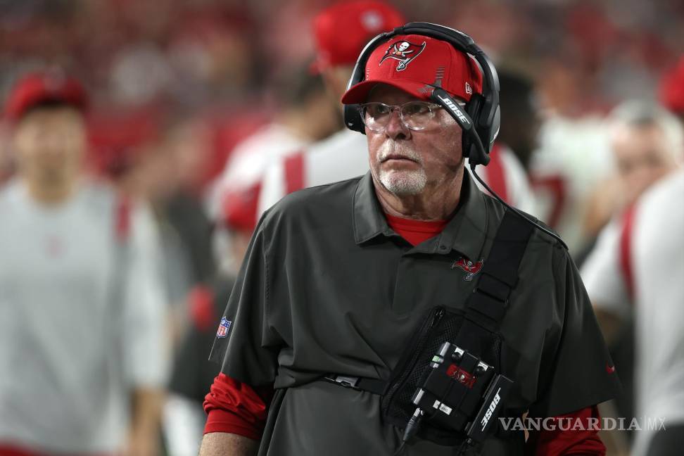El head coach de los Buccaneers lanzó un ‘manotazo’ al casco de Andrew Adams para evitar una penalización durante el partido