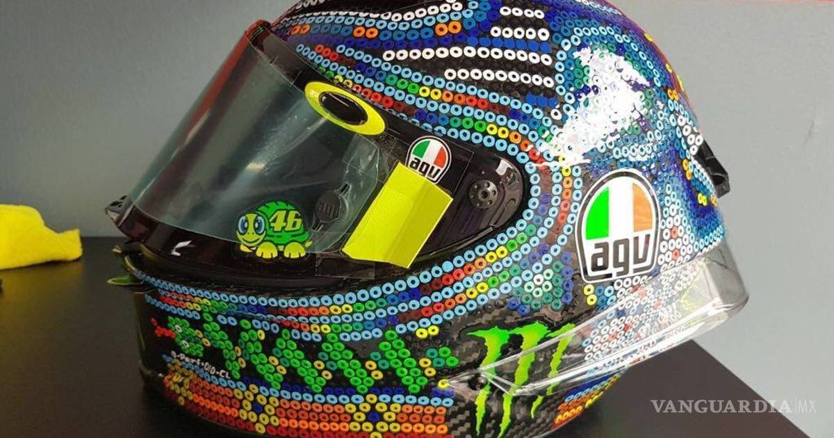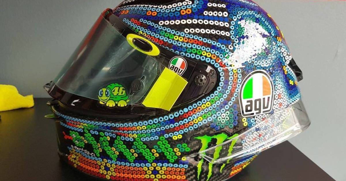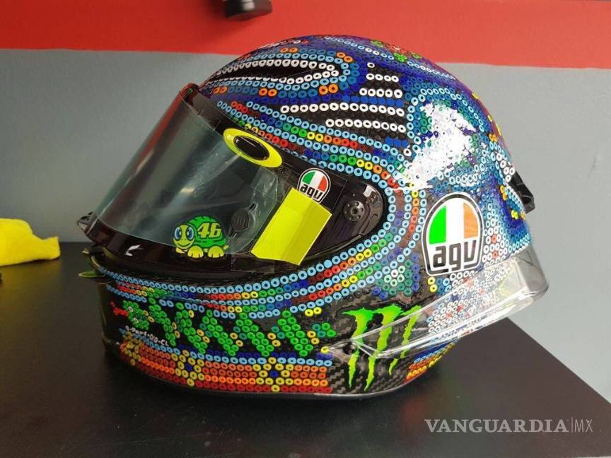 En los diseños, que previamente se realizan bocetos en papel milimétrico, se utilizan chaquiras que se pegan una por una, pero no fue en el caso del casco de Rossi.