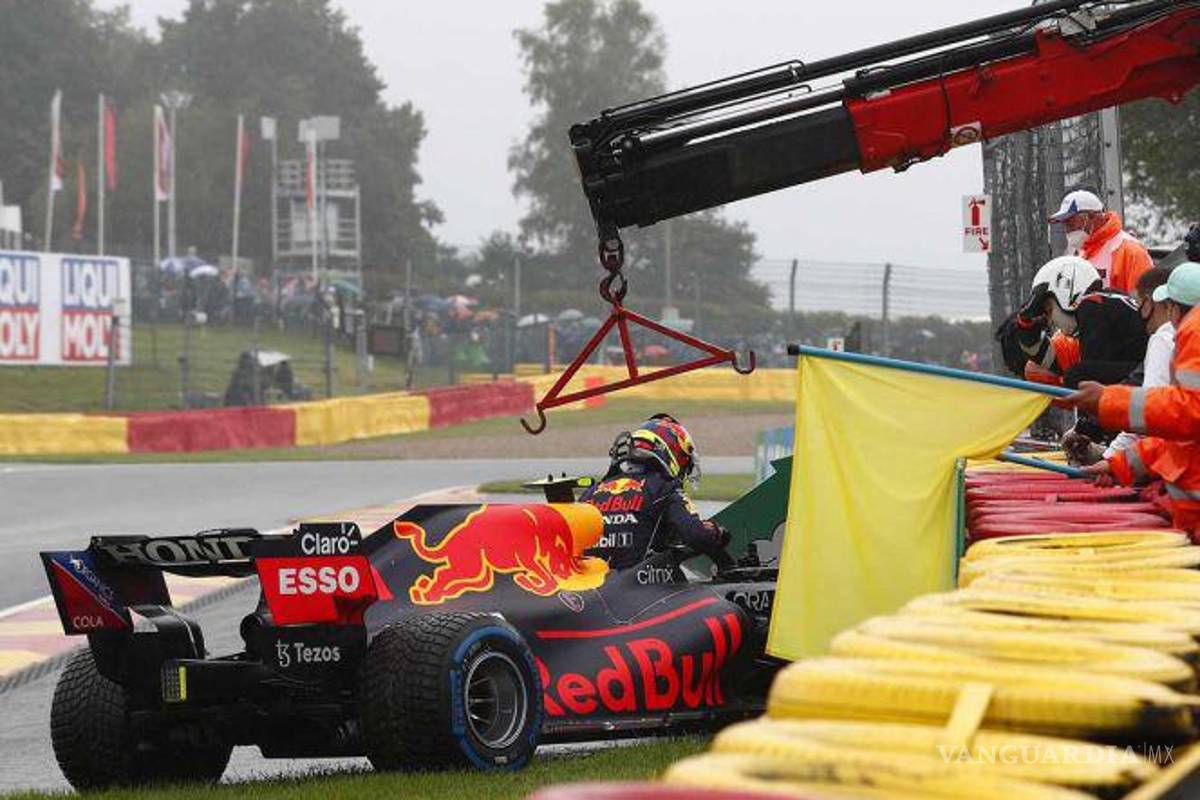 El mexicano Sergio Pérez (Red Bull) no podrá tomar parte este domingo en el Gran Premio de Bélgica, el duodécimo del Mundial de Fórmula Uno, ya que accidentó su monoplaza en la vuelta de instalación en la lluviosa pista de Spa-Francorchamps, justo antes de la prueba.