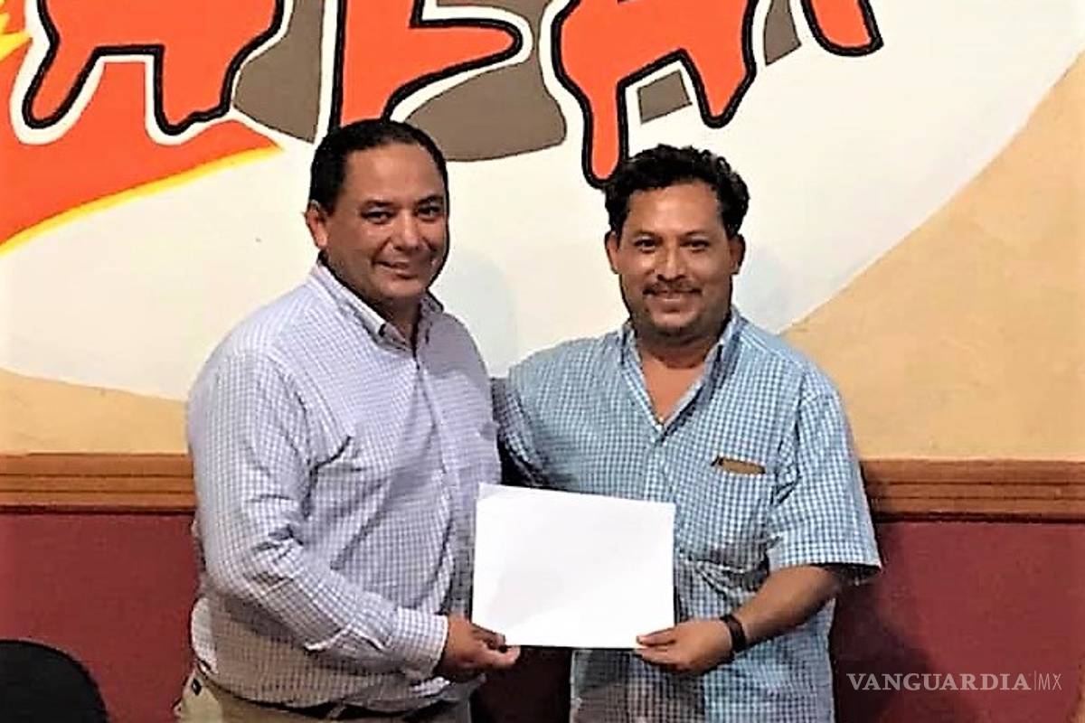 Luis Suárez entrega constancia de ingreso al representante de Cafés de Bóxer, Salvador Badillo