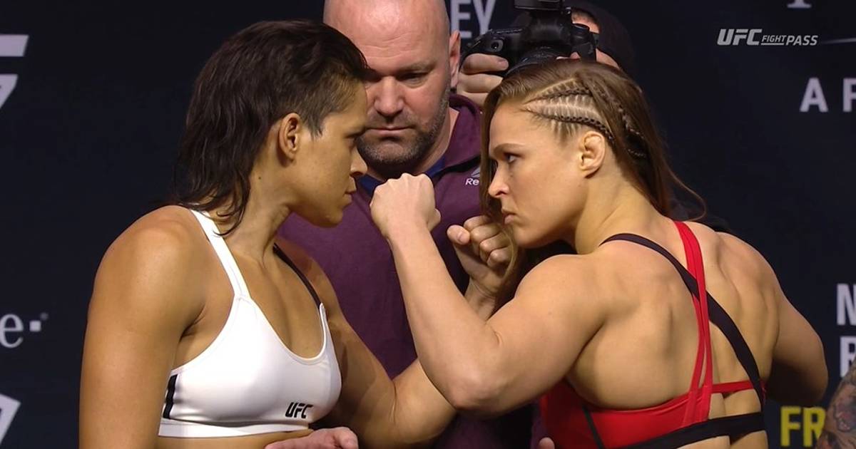 Intensísimo el careo entre la campeona @Amanda_Leoa y @RondaRousey nuestra pelea estelar de #UFC207 mañana!!! pic.twitter.com/DezuLfQrrS