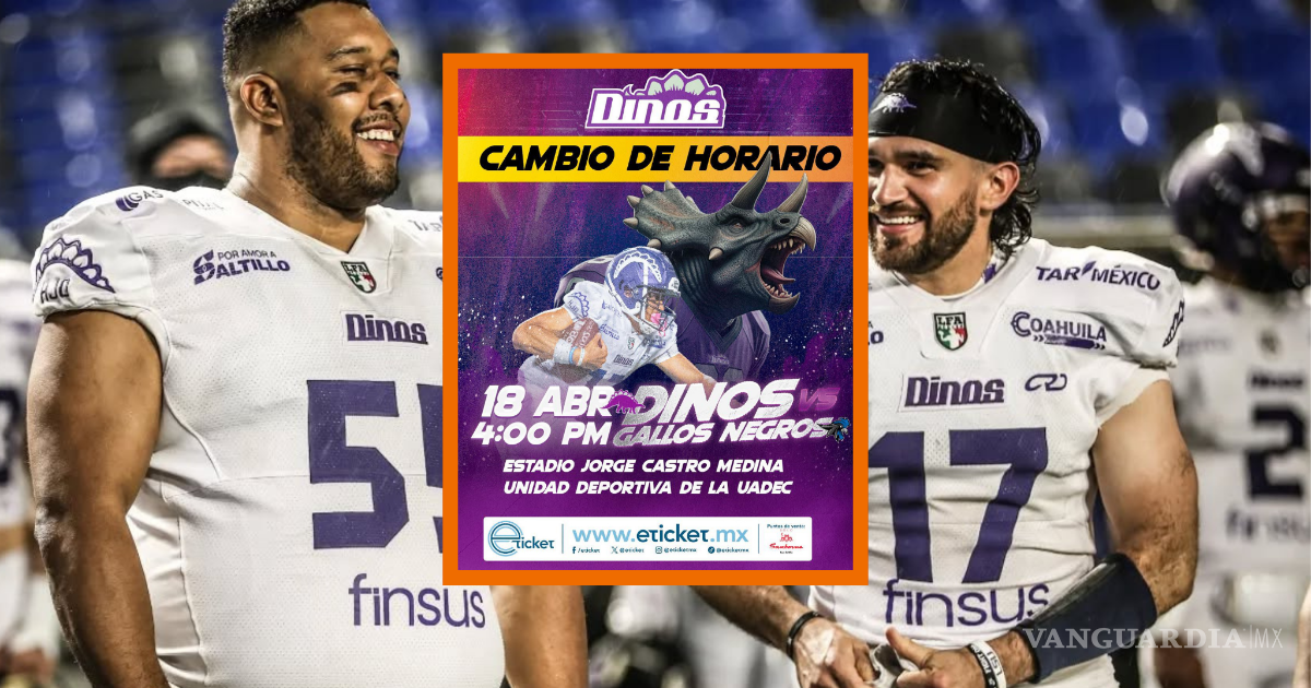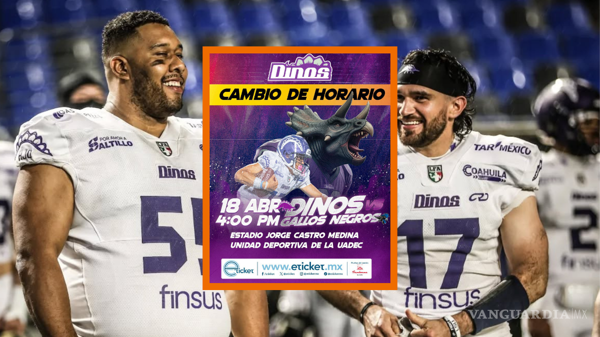 Los Dinos de Saltillo informaron un cambio en el horario de su próximo encuentro como local dentro de la Temporada 2026 de la Liga de Futbol Americano Profesional (LFA), programado para este sábado 18 de abril frente a los Gallos Negros de Querétaro.