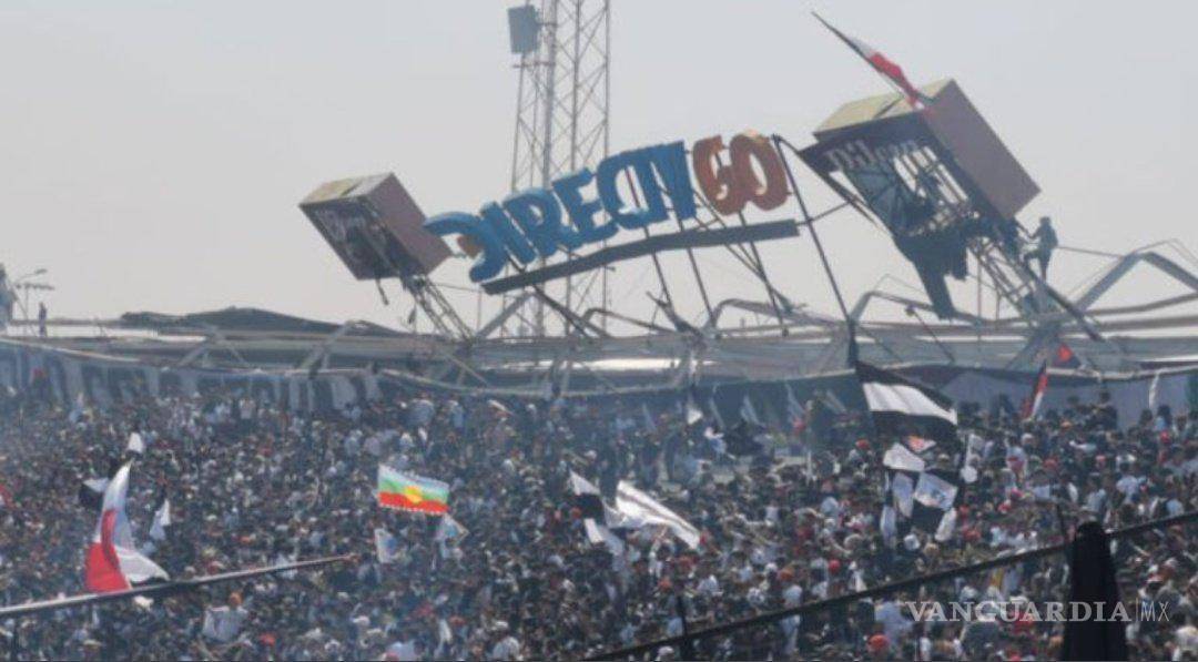 Una parte del techo del sector Cordillera del Estadio Monumental de Chile, colapsó con la presencia de los fanáticos.