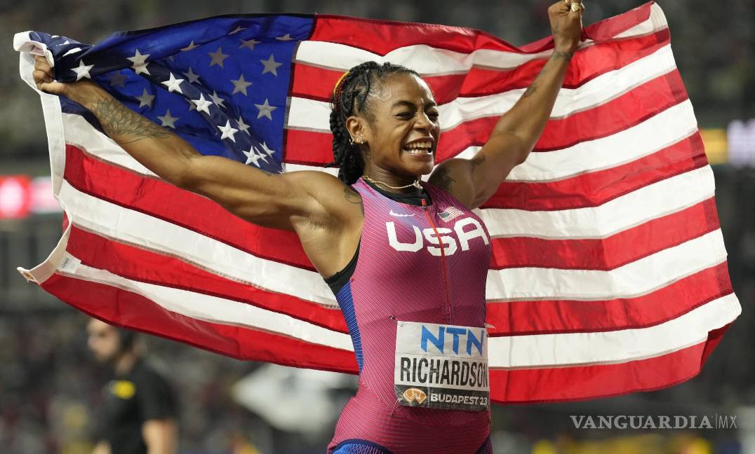 Sha’Carri sopló un beso hacia el cielo de Budapest, fijó la mirada al marcador electrónica y — alucinada por el momento — enfiló hacia la tribuna para recibir una bandera estadunidense.