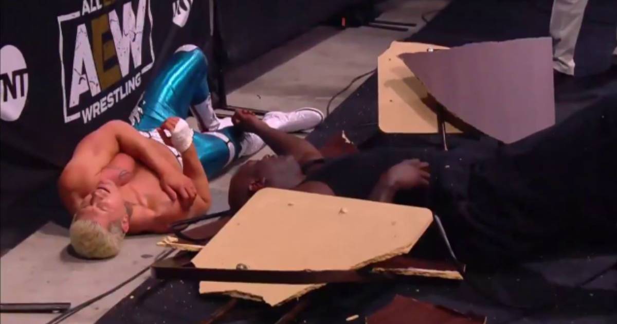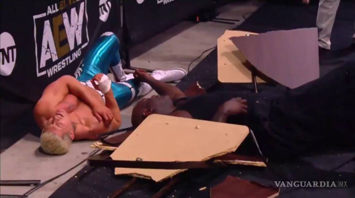 A pesar de su buena actuación en el ring, Cody Rhodes se lanzó contra el exjugador de la NBA y ambos terminaron afuera del cuadrilátero rompiendo una mesa.