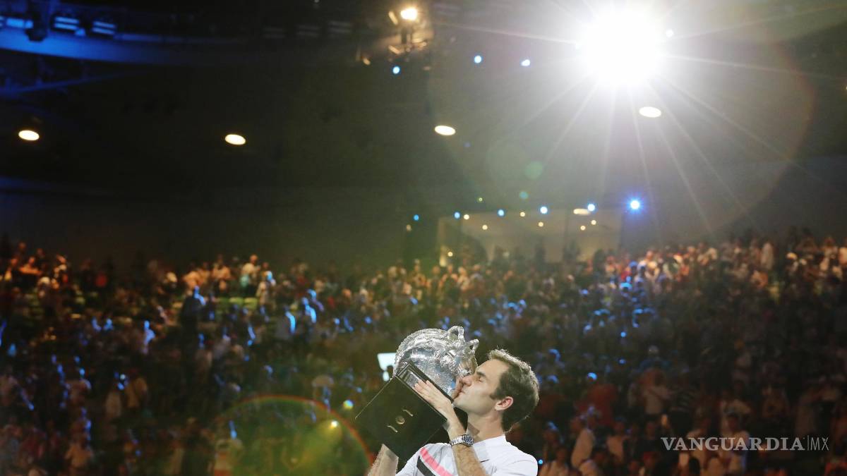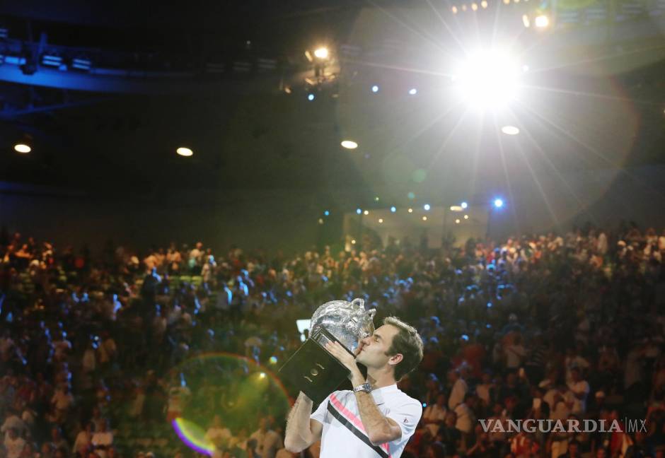 Roger Federer de Suiza besa su trofeo después de ganar la final masculina contra Marin Cilic de Croacia en el torneo de tenis Australian Open Grand Slam en Melbourne, Australia, el 28 de enero de 2018.EFE/EPA/Mast Irham