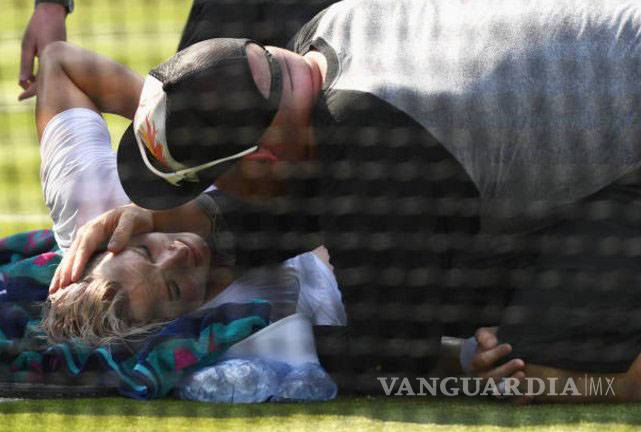 La estadounidense sintió un fuerte dolor en la rodilla derecha y se desplomó sobre la hierba, lo que motivó que la pelota impactada por su rival le golpeara en el cuerpo.