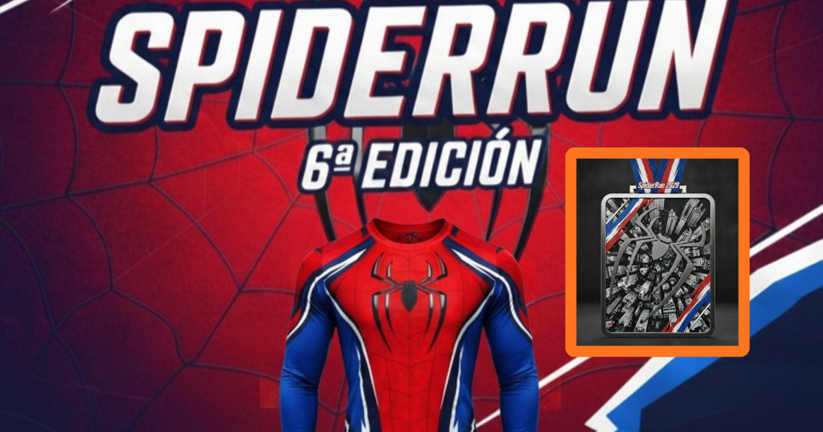 La medalla de esta edición presenta un diseño rectangular con bordes metálicos, al centro una figura de araña en relieve y un fondo que recrea una vista aérea de edificios. El listón combina tonos rojo, blanco y azul, con la leyenda Spider Run 2026, un distintivo que acompañará a quienes crucen la meta. Por su parte, la playera oficial será de manga larga, en colores rojo y azul, con un diseño inspirado en el traje clásico del superhéroe, pensada para el uso deportivo y conmemorativo.