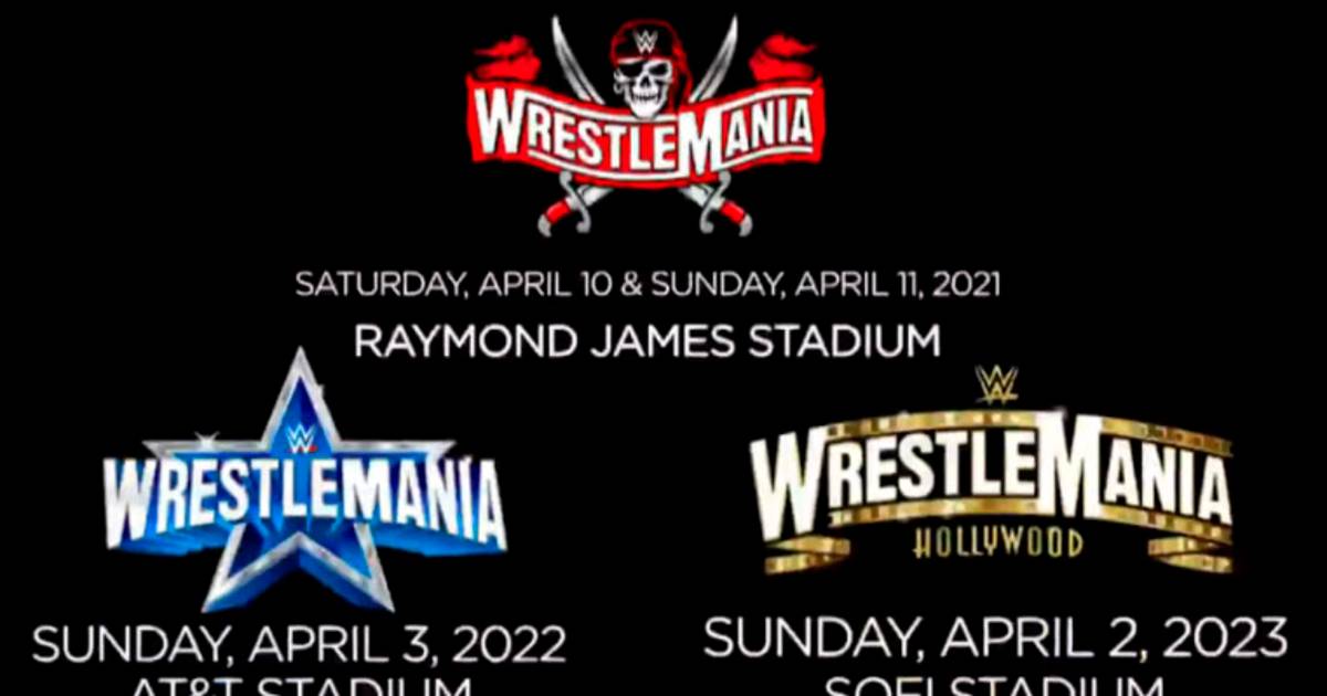 Luego de que surgieron reportes de que WrestleMania, que en teoría se realizaría el 28 de marzo de 2021 desde el SoFi Stadium en Los Ángeles, California, tenía una alta probabilidad de mudarse a Tampa, ayer la WWE confirmó fechas y sedes de las siguientes tres ediciones de WrestleMania por medio de un un video promocional en el que participaron Triple H, Stephanie McMahon, Roman Reigns, Paul Heyman, Sasha Banks y John Cena, donde dieron a conocer las sedes de las siguientes tres ediciones de WrestleMania.