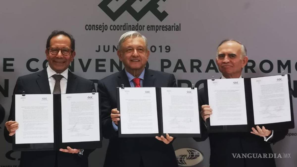 Mientras que Carlos Salazar Lomelín, presidente de CCE, expuso que la firma de este compromiso puede ser trascendente si lo hacen bien y agradeció al presidente López Obrador por su presencia y por el acuerdo.
