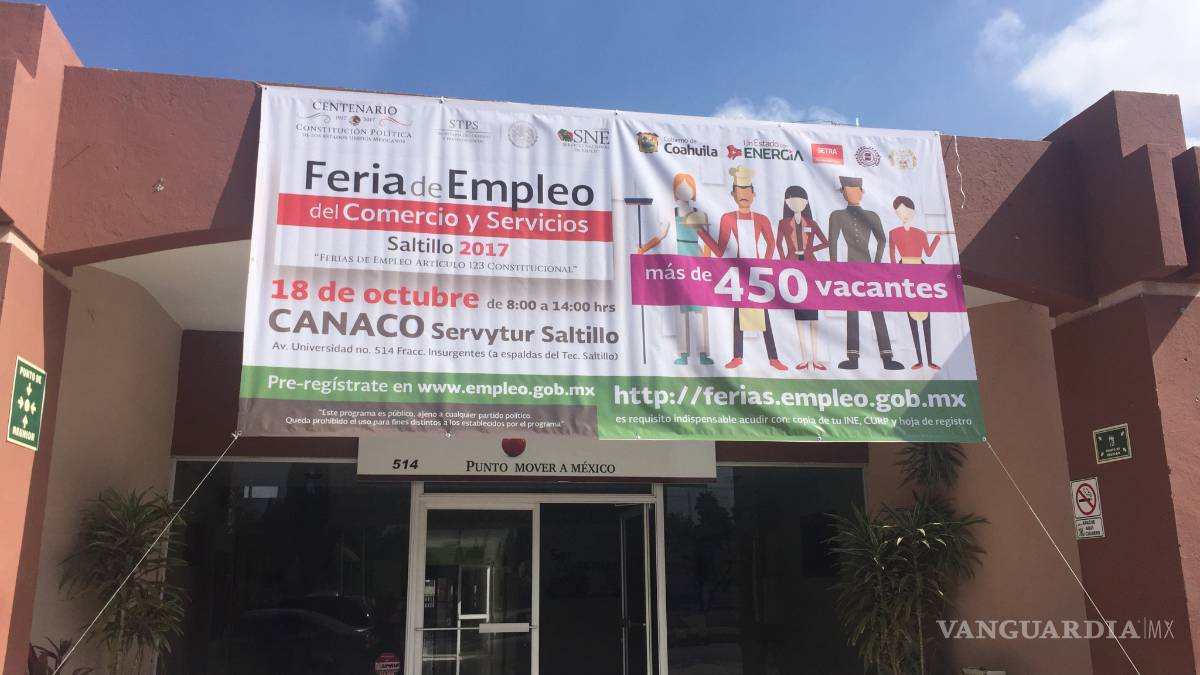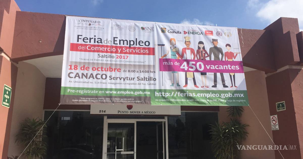 La Cámara, la Secretaría del Trabajo y el Servicio Nacional de Empleo realizan una Feria de Empleo para Comercio y Servicios, que ofrecerá más de 450 vacantes y se realizará el 18 de octubre de 8:00 a las 14:00 horas en las instalaciones de la Canaco Saltillo.