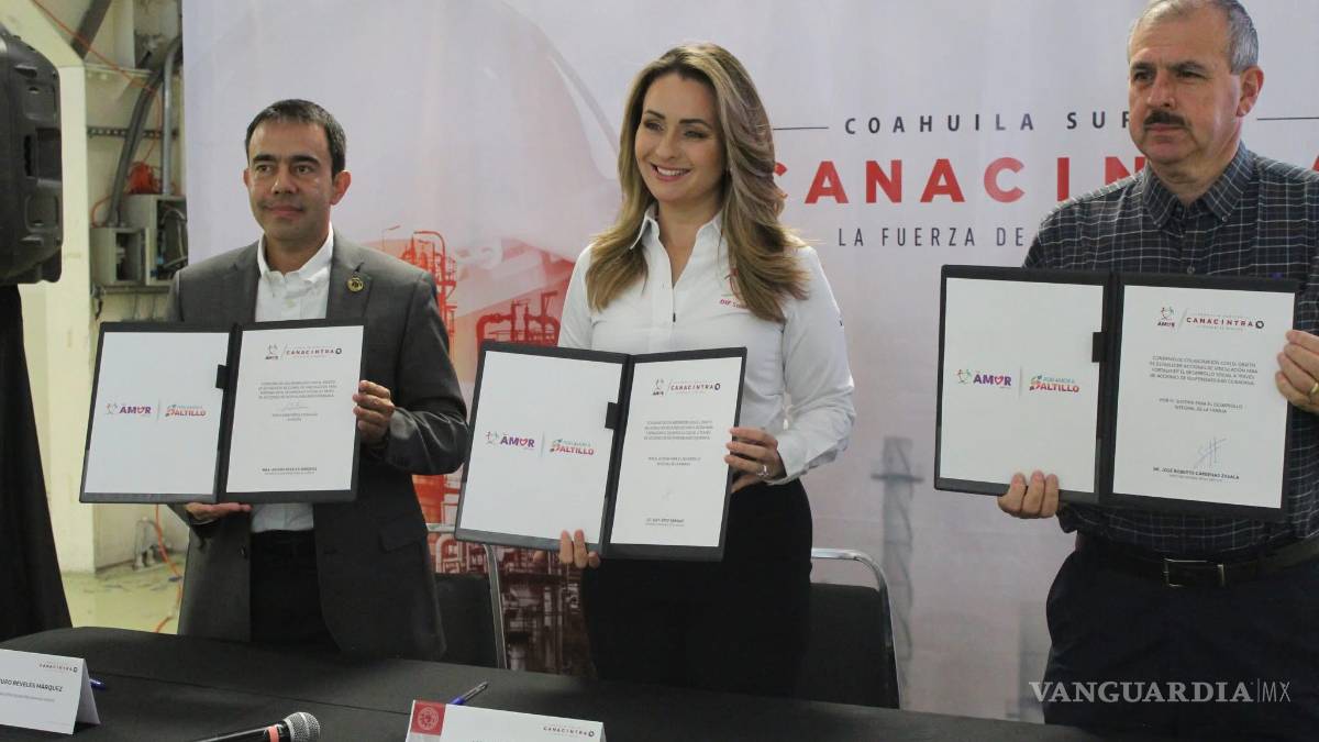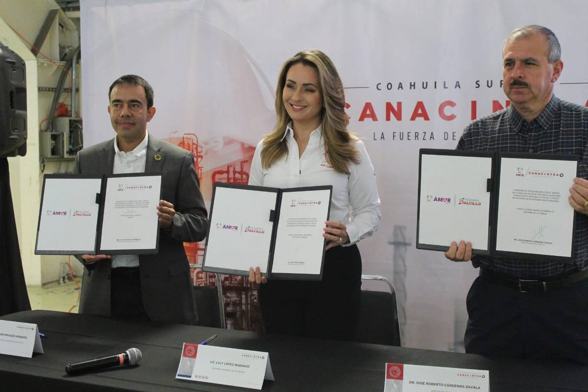 La firma del convenio estuvo a cargo del presidente de Canacintra Coahuila Sureste, Arturo Reveles Márquez, la presidenta Honoraria del DIF Saltillo, Luly López Narango y el director del DIF Saltillo, José Roberto Bernal Zavala.