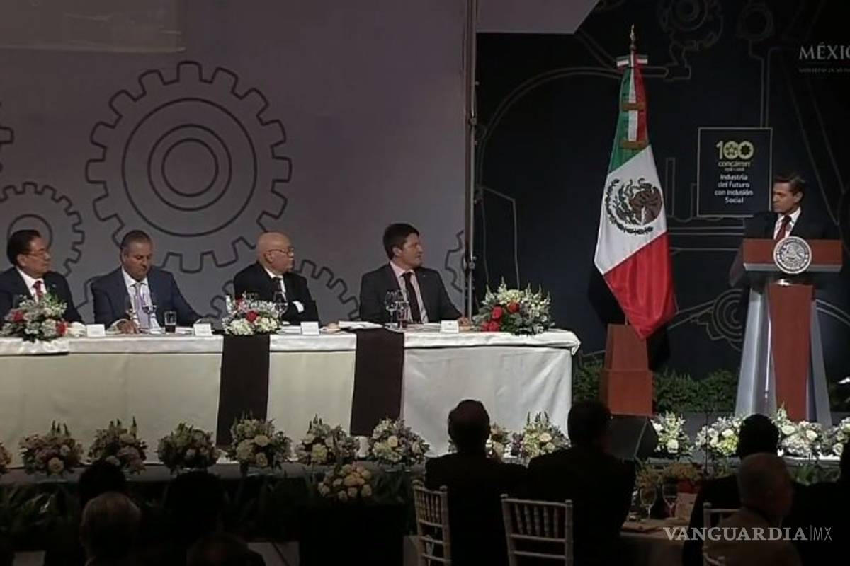 En la comida de clausura de la 25 Reunión Anual de Industriales (RAI), en el marco de los 100 años de la Confederación de Cámaras Industriales (Concamin), Peña Nieto indicó que para que esto pase, será necesario seguir fomentado empleos en el país, y estimó que por ello se espera que al final de su administración se logre llegar a una cantidad de cuatro millones de empleos en su sexenio.