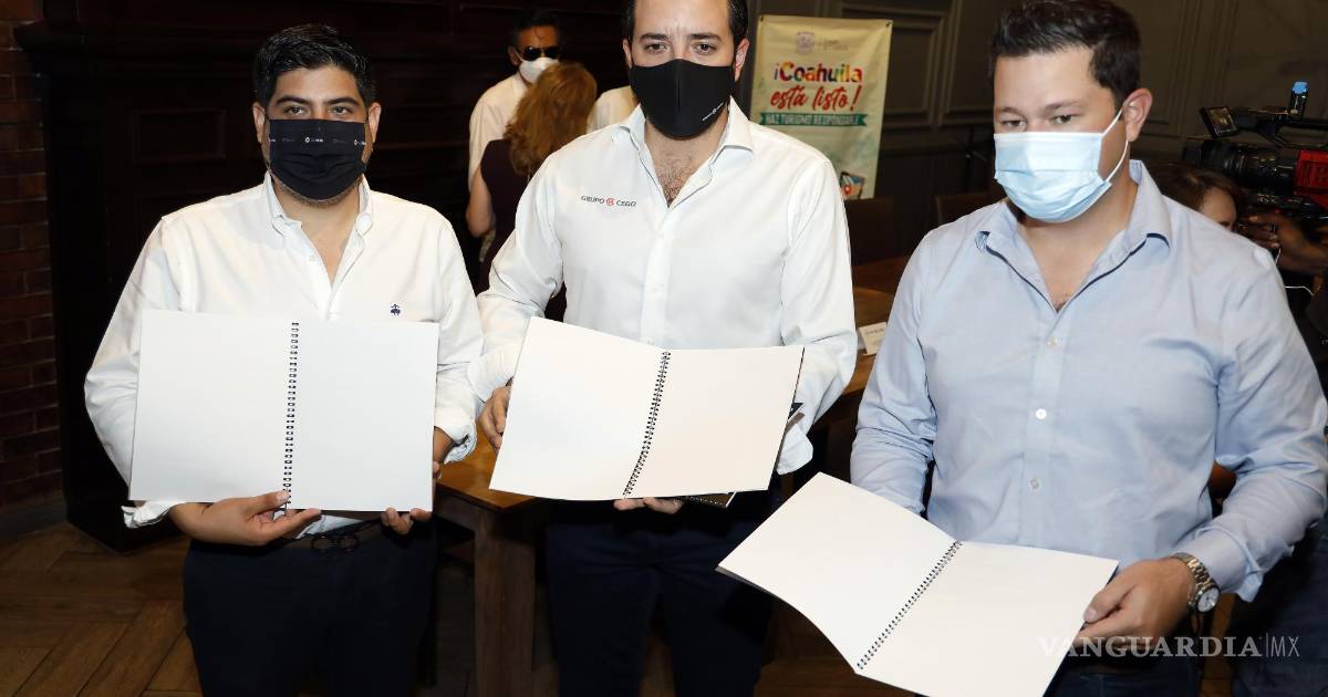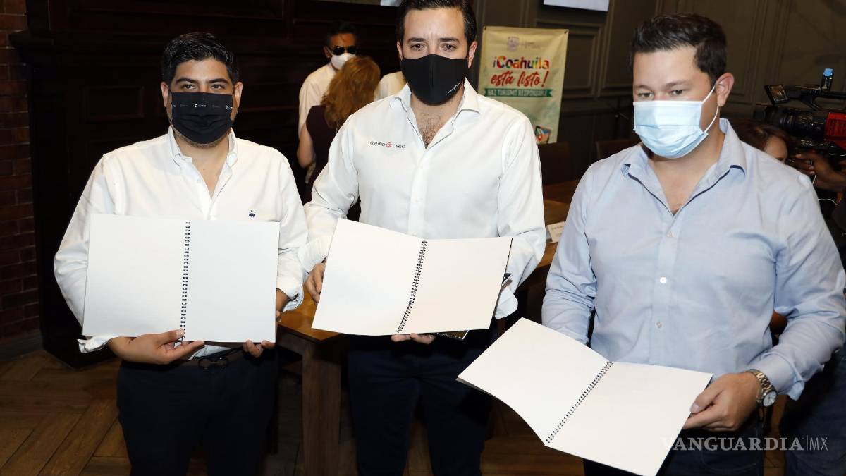 El vicepresidente de Canirac Coahuila, Carlos Daniel Guajardo, la secretaria de Turismo, Azucena Ramos, el director de Fomento Económico, Blas Flores González, el subsecretario de Inclusión de la Secretaría de Inclusión y Desarrollo Social, Luis Durán y el presidente de APRIDV, Martin Mercado presentaron los pormenores del programa.