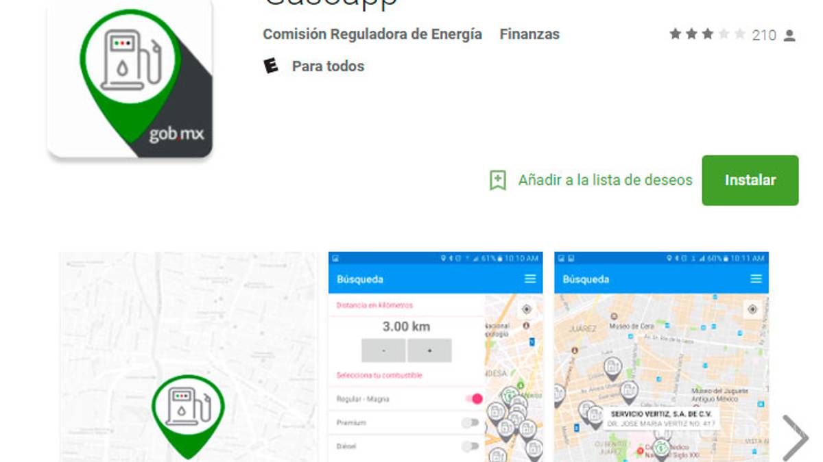 Esta app de la Comisión Reguladora de Energía (CRE) puede localizar a nivel nacional la gasolinera "más cercana, más barata o ambas", en tiempo real e incluso, el tipo de combustible de preferencia conforme a un radio de kilómetros de búsqueda indicado.