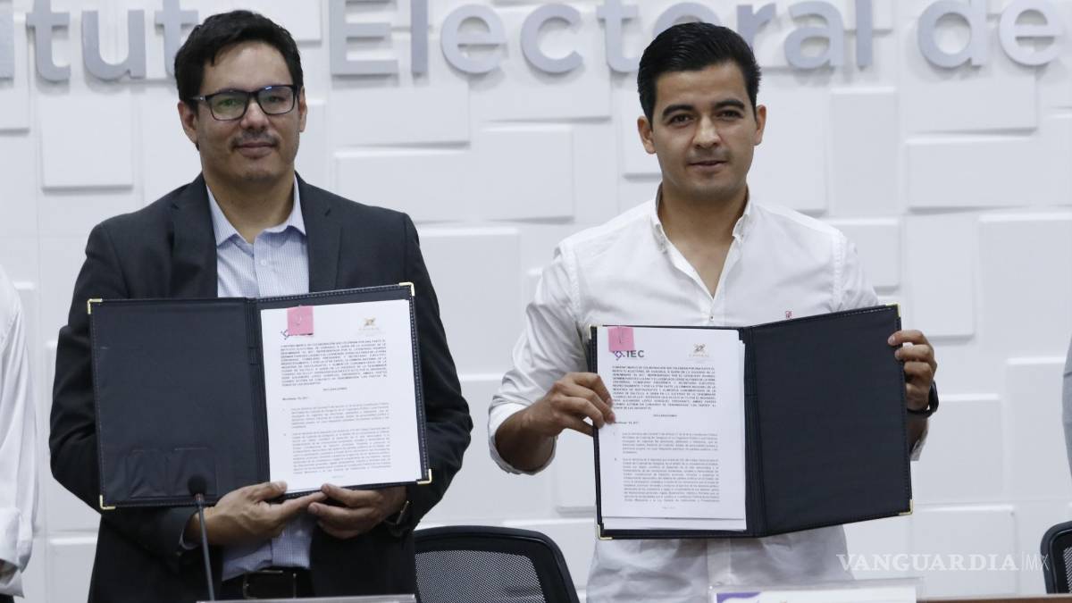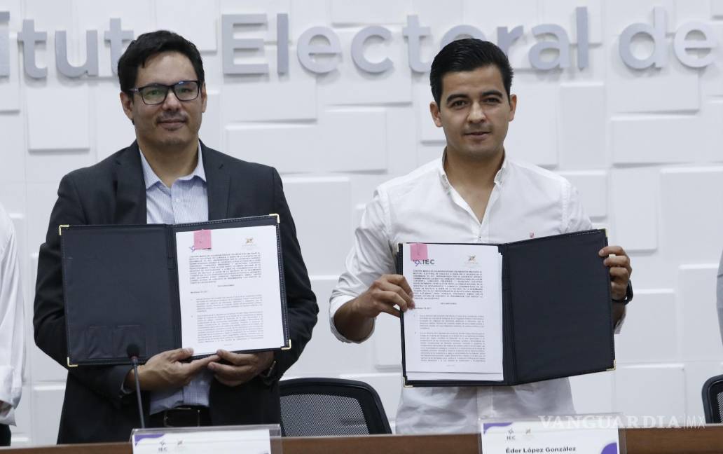 La firma del convenio estuvo a cargo del consejero presidente del IEC, Rodrigo Paredes Lozano, y el presidente de Canirac Saltillo, Éder López González, así como otros miembros de la Cámara y el Instituto.