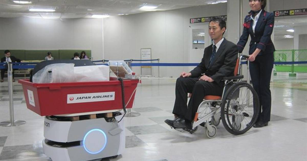 La aerolínea Japan Airlines (JAL) puso a prueba robots que ayudan a los pasajeros a transportar el equipaje en aeropuertos, especialmente dirigido a discapacitados y a personas mayores de cara a la celebración de los JJ.OO. de Tokio 2020.
