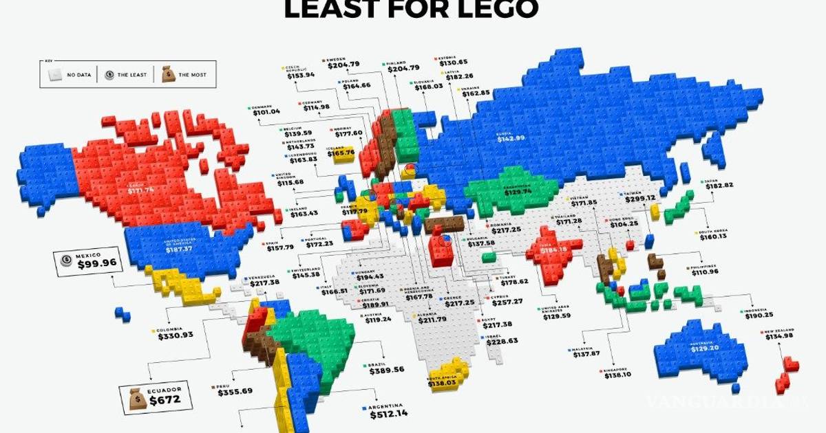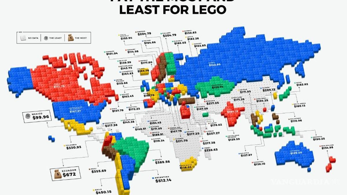 Un mapa realizado por The Toy Zone muestra que, efectivamente, en este país se paga menos por cada set. Al mismo tiempo, Ecuador es el país donde esta afición sale más cara.