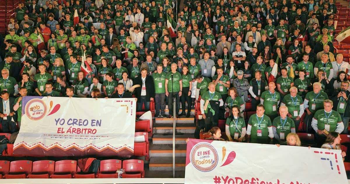 Explicó que esta acción en defensa del INE, representa la analogía de lo que ocurre en un proceso electoral y en un encuentro de fútbol, donde los ciudadanos permanecen en la tribuna y observan cómo compiten los equipos y donde el árbitro califica las jugadas “el árbitro, que lo importante es que sea neutral”.
