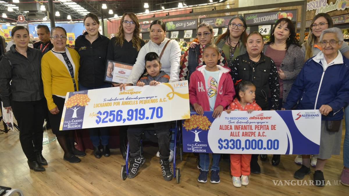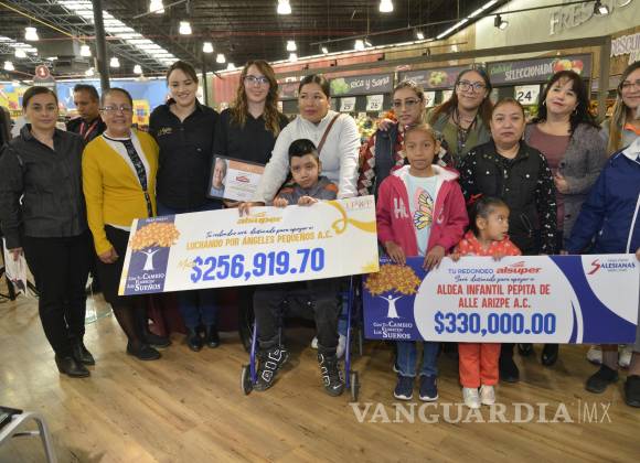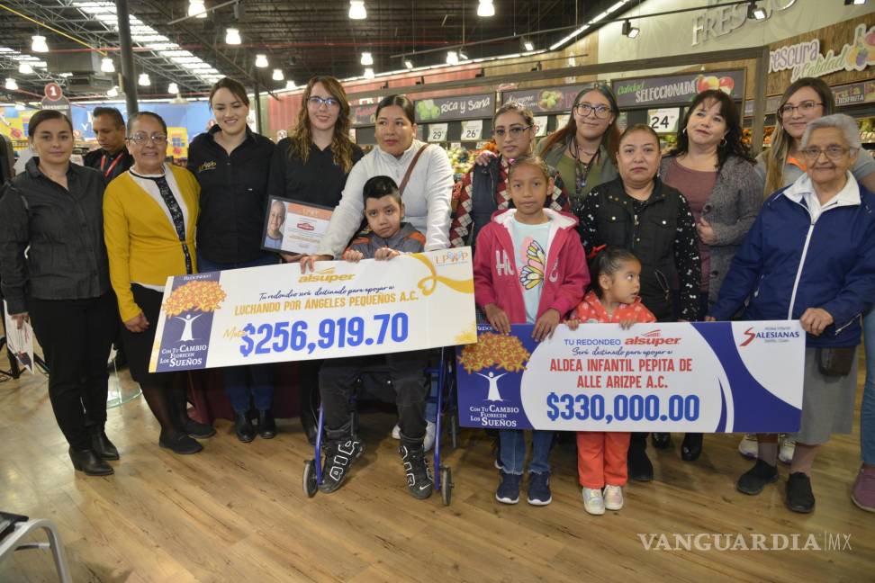 A través del Programa de Redondeo Con tu Cambio Florecen los Sueños, Al súper hizo la entrega de un donativo a la Aldea Infantil Pepita de Valle Arizpe AC por 330,000.00 pesos y para Luchando por Ángeles Pequeños AC por 256 mil 919.70 pesos, recursos que se obtuvieron a través de las aportaciones que realizan los clientes de las diferentes tiendas.