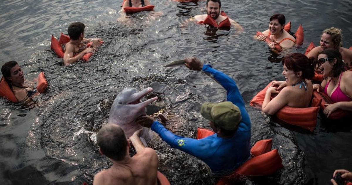 Mientras que en la naturaleza, los delfines nadan 'en familia' hasta 100 millas diarias, en los delfinarios donde nadan con turístas están recluídos a espacios mucho más pequeños. La mayoría de los delfines cautivos muere prematuramente.