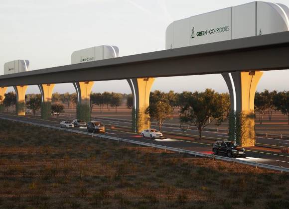 El proyecto, impulsado por la empresa Green Corridors, busca construir una “vía guía” sobre la cual transitarán lanzaderas autónomas diesel-eléctricas, capaces de mover tráileres de mercancía desde y hacia centros logísticos diseñados exprofeso en ambos lados de la frontera.
