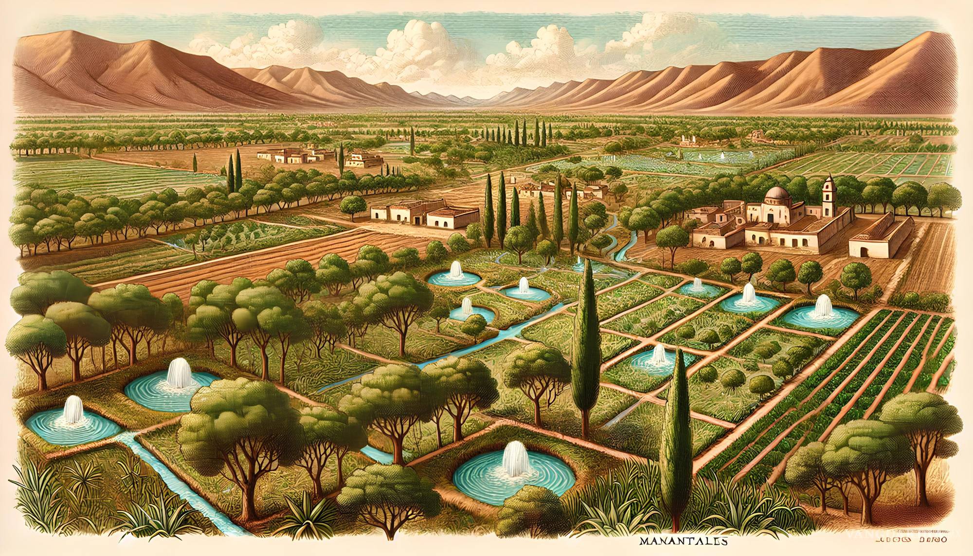 El valle de Saltillo era, como se decía entonces, “de riego”. Las haciendas solían llevar nombres con referencias al agua: Agua Dulce, El Salado. En 1777, el fraile Juan Agustín de Morfi reportó la existencia de 665 manantiales en el valle (Gazeta I, 2019). En 1792 el cronista Pedro Fuentes redujo la cifra a poco más de 300 (Libro Historias de Saltillo).
