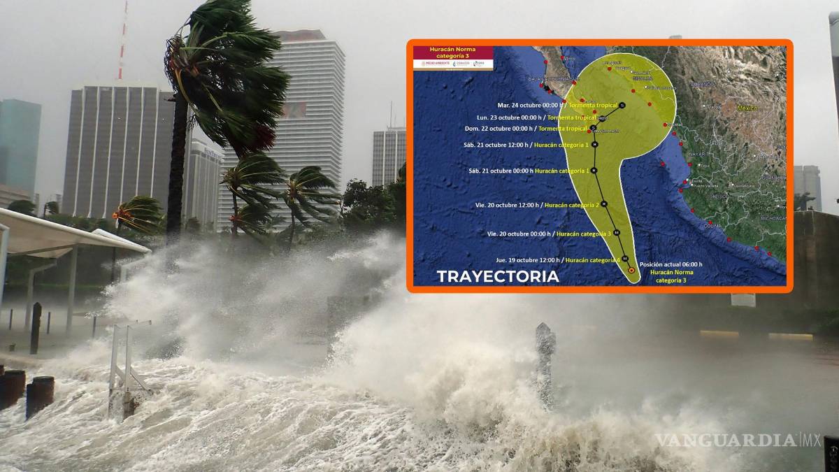 Se prevé que, durante la madrugada del domingo, el huracán “Norma” ingrese al sureste de Baja California Sur, y durante la mañana se encamine hacia las costas de Sinaloa, por lo que se prevén lluvias puntuales torrenciales en Baja California Sur, Sinaloa y Nayarit; lluvias muy fuertes a intensas en Durango, Jalisco y Colima; además de chubascos y lluvias fuertes sobre entidades del noroeste, norte y noreste del país.