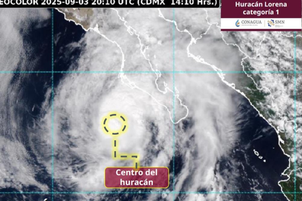 Pese a que se prevé que “Lorena” vaya intensificándose con el paso de las horas, el ciclón pasará de ser Huracán Categoría 1 hasta el medio día del jueves 4 de septiembre.