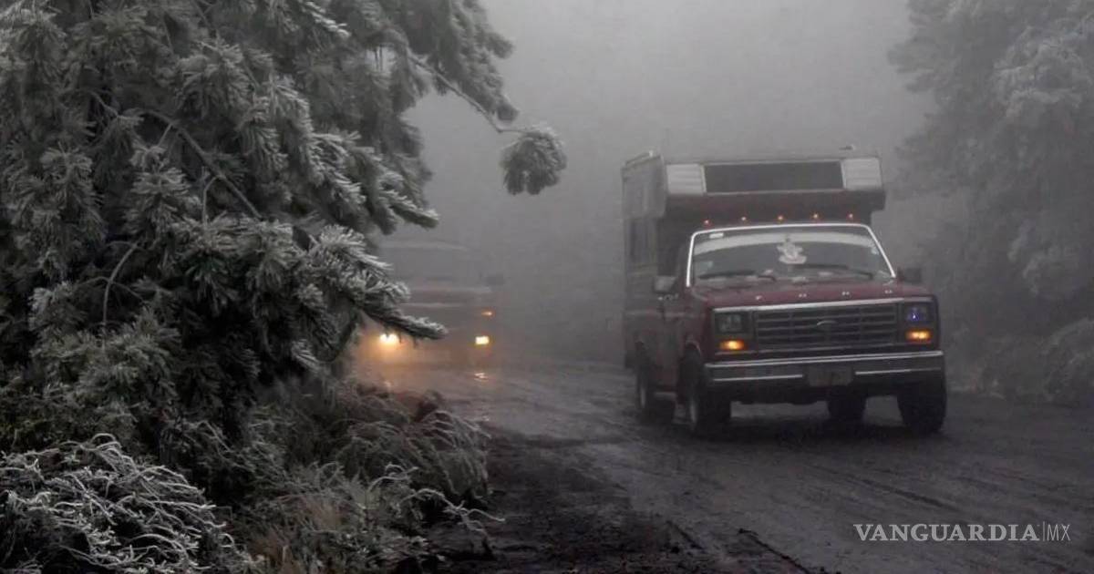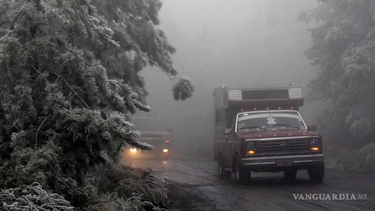 Posible caída de nieve y/o aguanieve: sierras de Baja California, Sonora, Chihuahua y Durango.