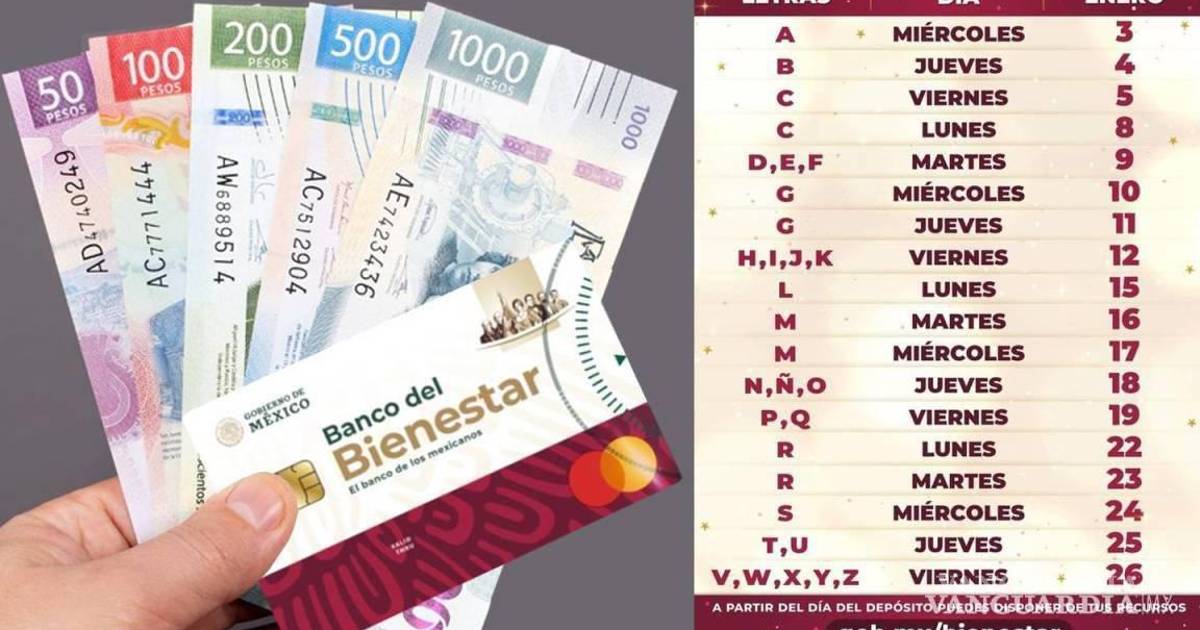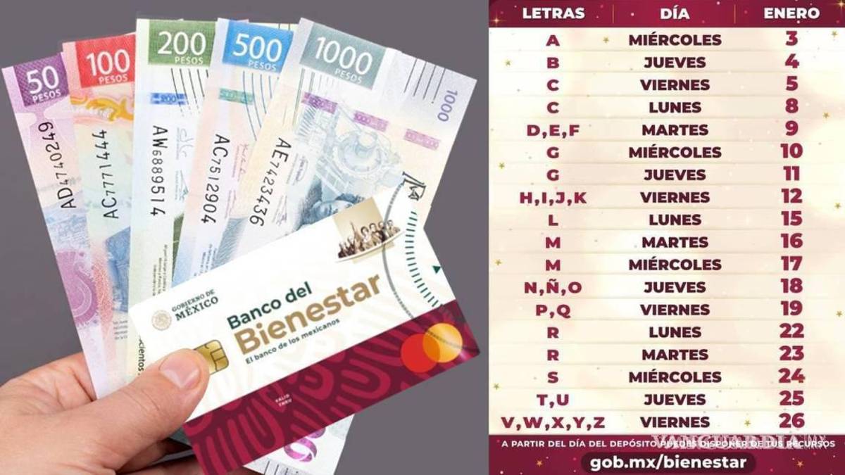 ¿QUÉ LETRAS COBRAN LA PENSIÓN BIENESTAR LOS DÍAS 22, 23, 24, 25 Y 26 DE ENERO?