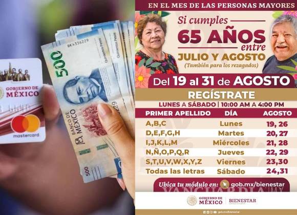 Pensión del Bienestar... ¿A qué letras le toca registro del 23 al 31 de agosto de 2024 para recibir los 6 mil pesos?