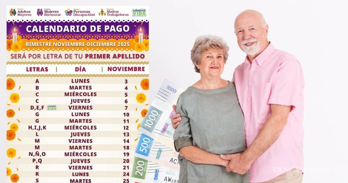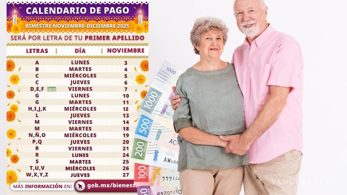 Se trata de 14 días de pagos para adultos de la tercera edad, correspondiendo a la letra inicial de su primer apellido, del 3 al 27 de noviembre; siendo parte del bimestre de noviembre-diciembre, el último pago de 2025.