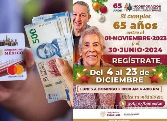 “Si cumples 65 años o más entre el 4 de NOVIEMBRE de 2023 y el 30 de junio de 2024, regístrate a la Pensión Adulto Mayor del 4 al 23 de diciembre”.
