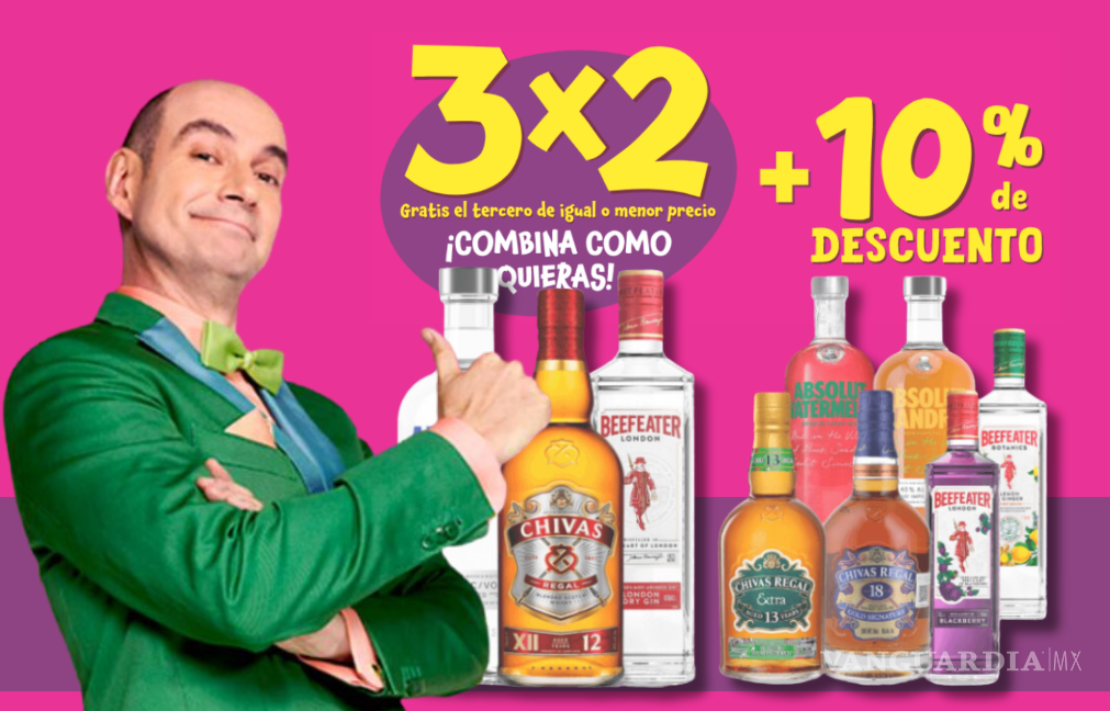 ¿QUÉ MARCAS PARTICIPAN EN LA PROMOCIÓN DEL 3X2 MÁS 10% DE DESCUENTO EN LICORES?