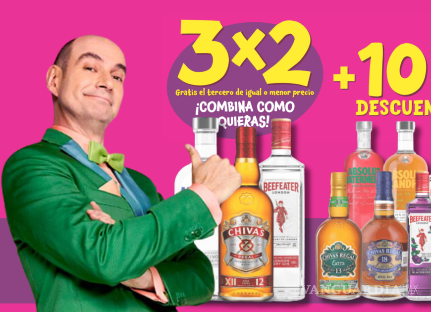 Soriana presenta una promoción especial de 3x2 más un 10% de descuento en bebidas alcohólicas, disponible tanto en tiendas físicas como en línea