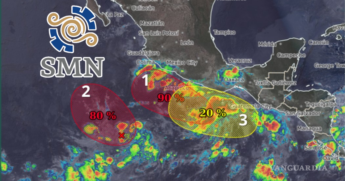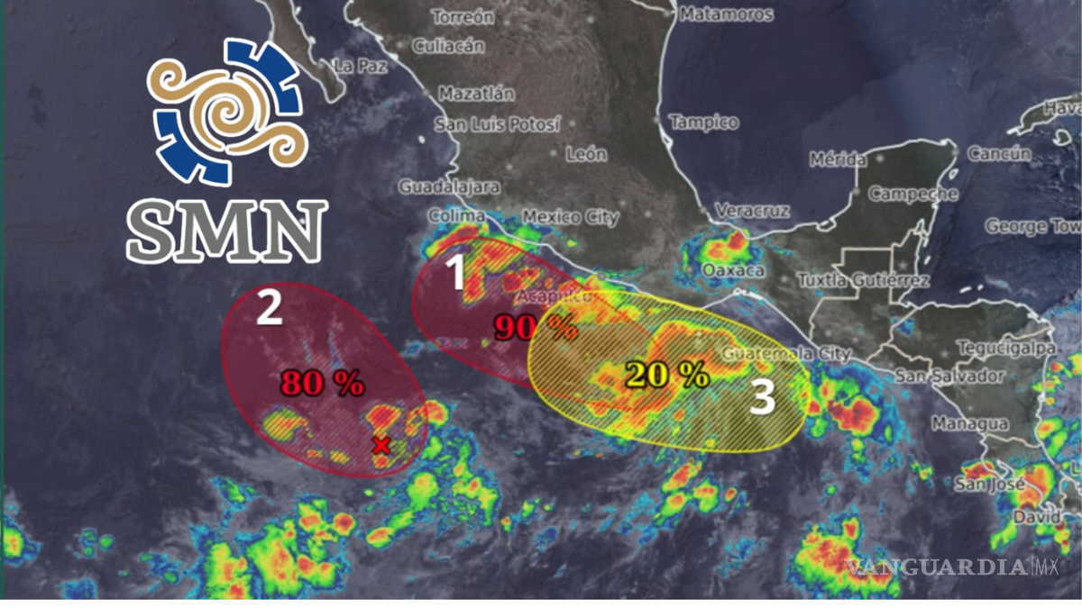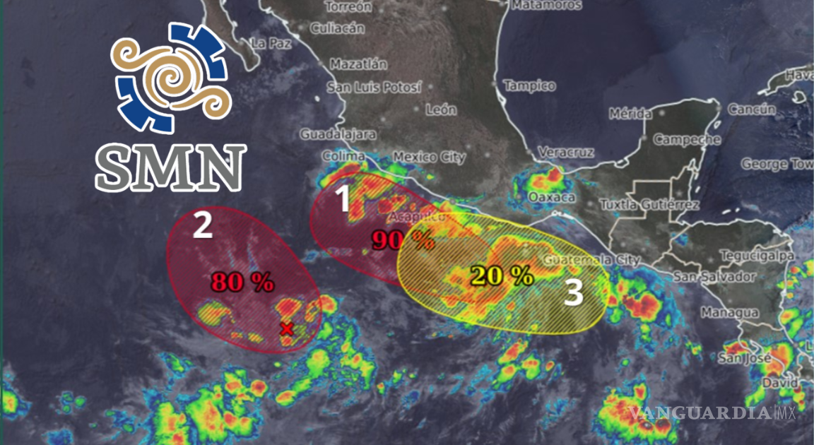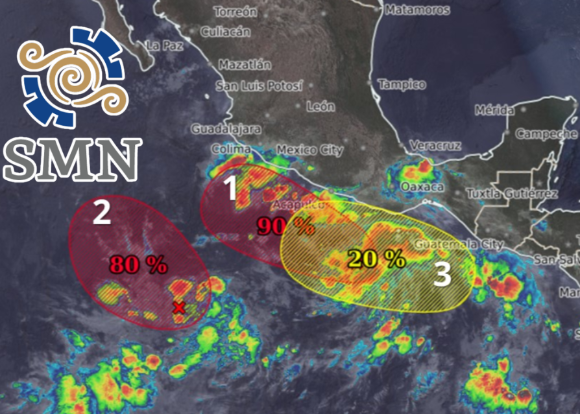 El SMN monitorea tres sistemas con potencial ciclónico en el Pacífico; Protección Civil pide a la población costera mantenerse informada y tomar precauciones