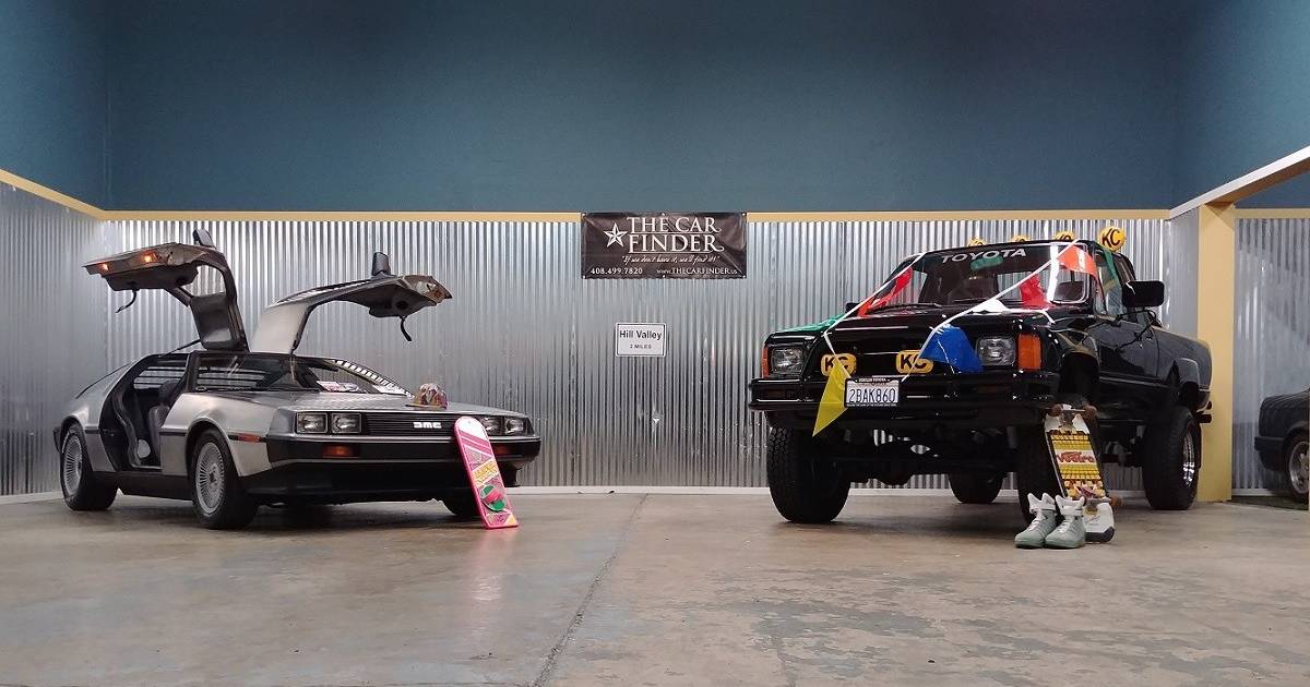 Hablando de la Toyota SR5, se trata de una réplica exacta del modelo que Marty McFly posee en la segunda entrega, misma que fue construida por su último propietario tras adquirirla en 2015, incorporando todos los detalles visibles de esta camioneta durante las películas, comenzando por la pintura negra de la carrocería resaltada por el nombre de Toyota en color gris sobre la compuerta trasera.