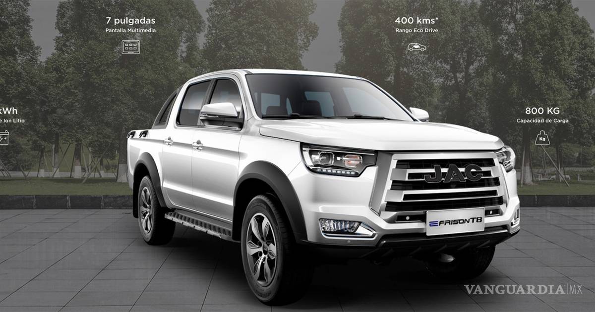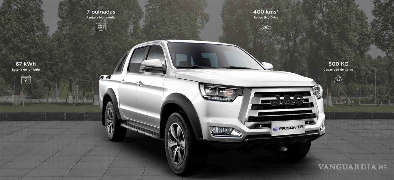 E-Frison T8 es una pick-up mediana que aún no tiene fecha de llegada a México, pero que está confirmada para nuestro mercado. Mide 5,615 mm de largo y cuenta con una batería de 67 kWh que también le darán una autonomía de entre 320 a 400 km. Cargar la batería de un 20% a 100% le tomará 7.5 horas.