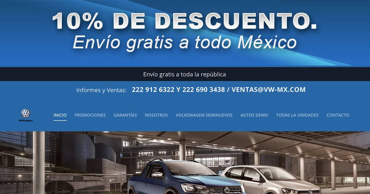 En los últimos días ha circulado por redes sociales una página web que se hace pasar por el sitio de la planta de Volkswagen en México y ofrece autos demo o seminuevos a precios de remate, con 10% de descuento y envío a toda la República. No caigas en el engaño, podría ser un fraude.