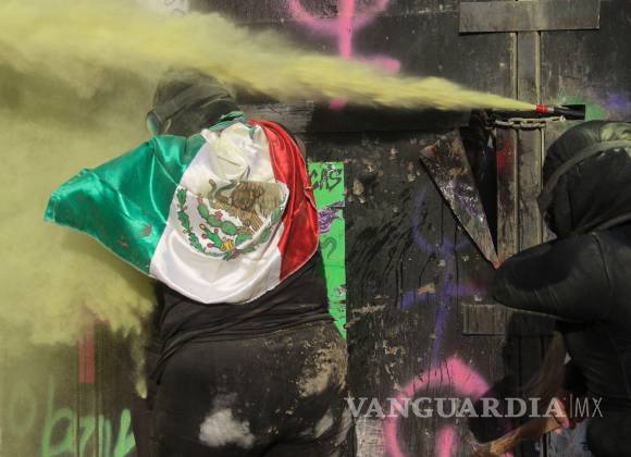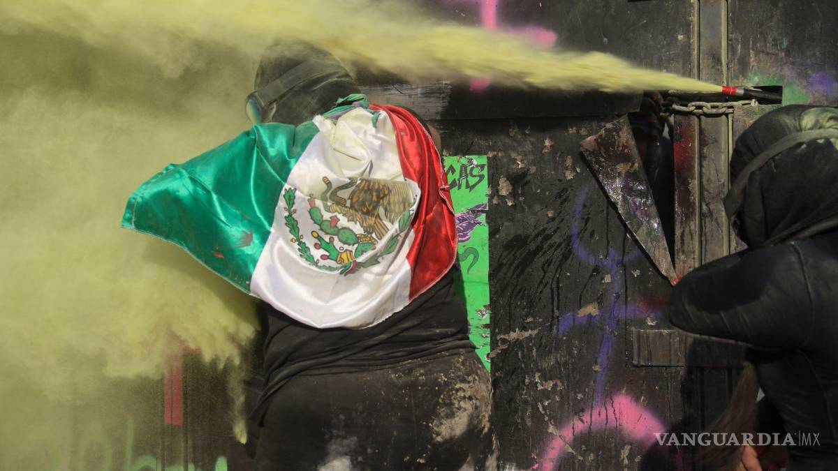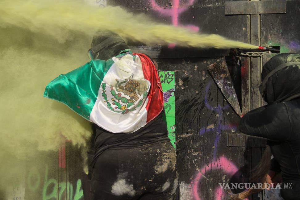 La atención se concentra en las vallas que resguardan Palacio Nacional y la Catedral Metropolitana. Ahí, las más aguerridas y armadas con mazos y martillos y hasta a patadas se lanzan contra las placas.